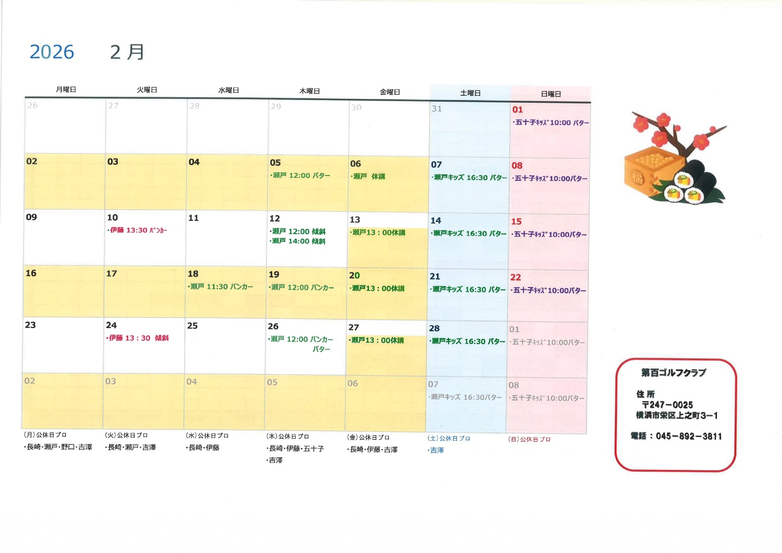 ● スクールカレンダーに表示されている全てのプロのレッスンが受けられます。